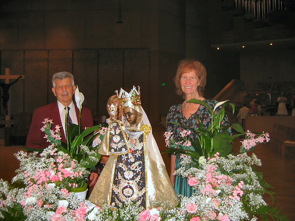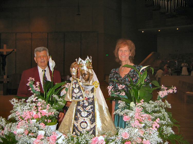 Die schwarze Madonna von Altoetting - im Hintergrund George Schoenstetter, der die Messe in der Kathedrale zum Anlass des Nationalen Deutsch-Amerikanischen Tages am 6. Oktober vor 6 Jahren gegruendet hat. Rechts im Hintergrund Theresa Berauer |